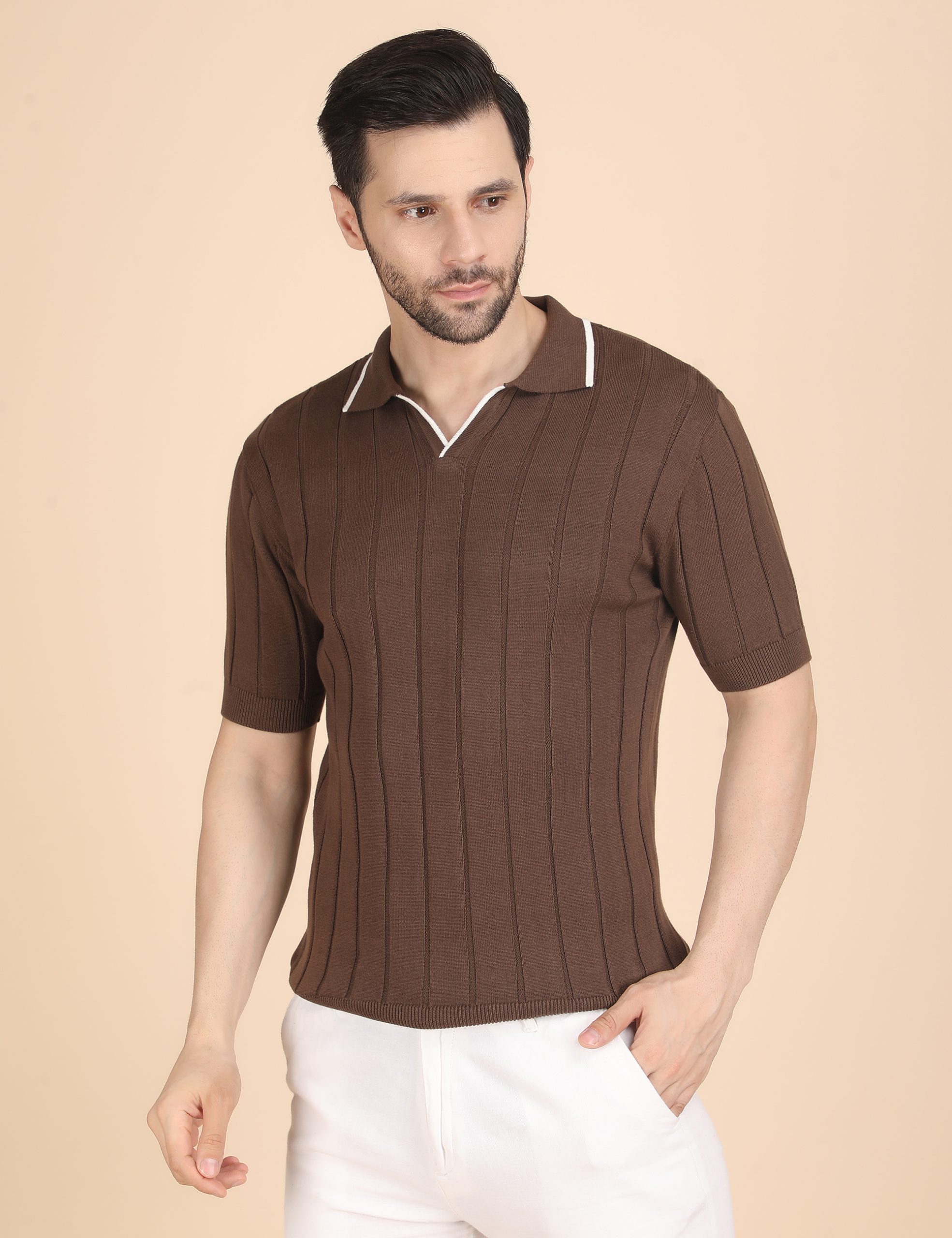 BROWN RIBBED POLO